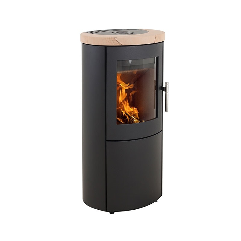Scan-Line 800 er en ellipseformet brændeovn i et smart og stilfuldt design af primært støbejern på de synlige overflader.