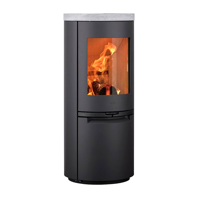 Scan-Line 900 er eksklusiv fra inderst til yderst. Det store glas fremhæver den flotte forbrænding, som let justeres med et anonymt luftreguleringshjul imellem de to håndtag på fronten. Lågen er udstyret med soft close, der løfter standarden for selvlukkende systemer.